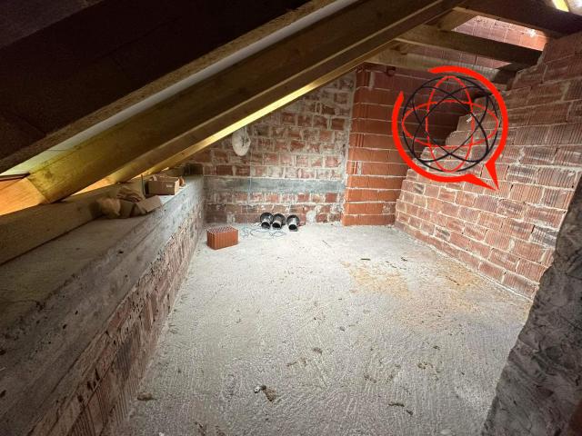 Budynek wybudowany z pustaków ceramicznych typu MAX, dach pokryty gontem bitumicznym IKO, wraz z pełnym deskowaniem oraz nowymi oknami dachowymi.