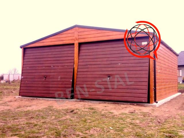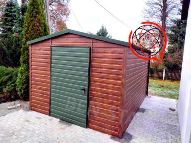Cena za garaż podana w ogłoszeniu 2980 zł to cena za garaż standardowy o wymiarze 3x5 ze spadem dachu do tyłu , blachą ocynkowaną oraz bramą dwuskrzydłową otwieraną na boki.