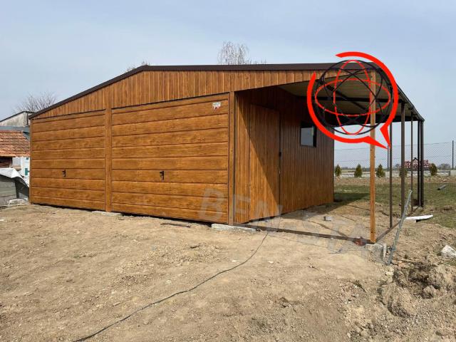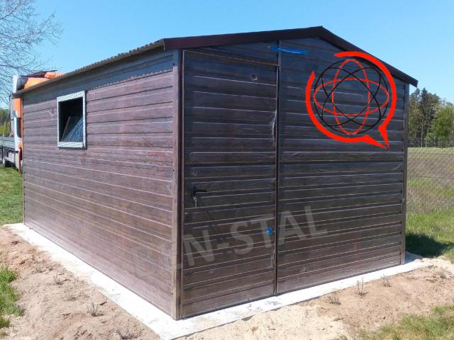 Cena za garaż podana w ogłoszeniu 2980 zł to cena za garaż standardowy o wymiarze 3x5 ze spadem dachu do tyłu , blachą ocynkowaną oraz bramą dwuskrzydłową otwieraną na boki.