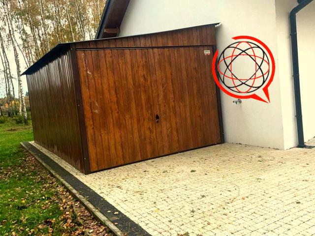 - poziomy panel blachy na bramie, drzwiach i ścianach garażu