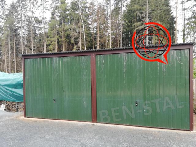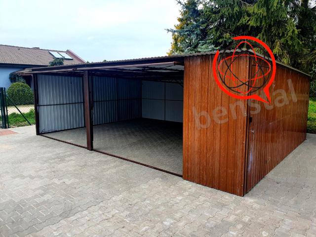 Cena za garaż podana w ogłoszeniu 2980 zł to cena za garaż standardowy o wymiarze 3x5 ze spadem dachu do tyłu , blachą ocynkowaną oraz bramą dwuskrzydłową otwieraną na boki.