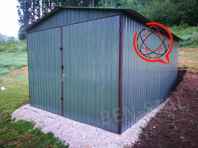 Cena za garaż podana w ogłoszeniu 2980 zł to cena za garaż standardowy o wymiarze 3x5 ze spadem dachu do tyłu , blachą ocynkowaną oraz bramą dwuskrzydłową otwieraną na boki.
