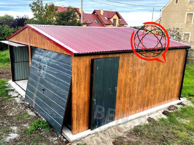 Cena za garaż podana w ogłoszeniu 2980 zł to cena za garaż standardowy o wymiarze 3x5 ze spadem dachu do tyłu , blachą ocynkowaną oraz bramą dwuskrzydłową otwieraną na boki.