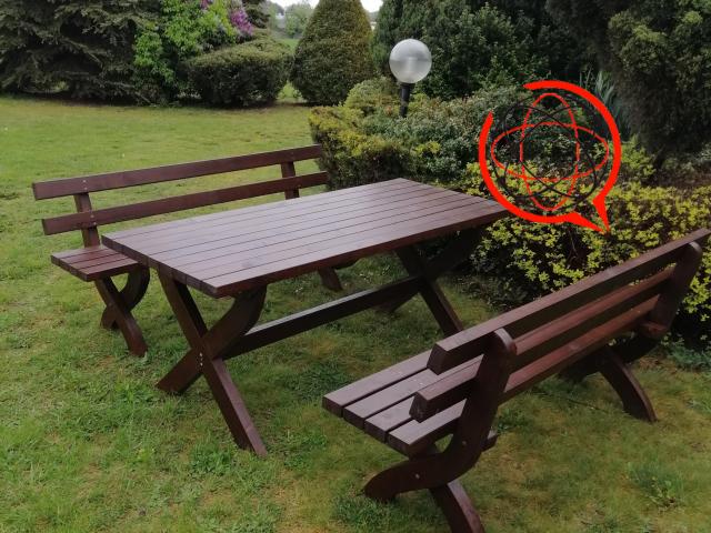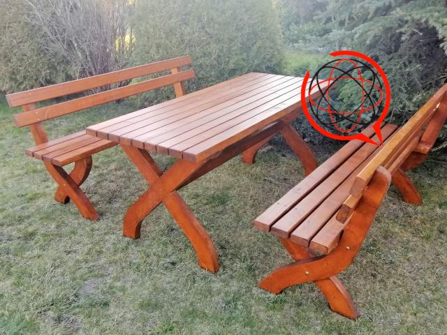 Skład Stół + dwie ławki , który może idealnie sprawdzić się w państwa ogrodzie, wykonany z litego drewna świerkowego sezonowanego .