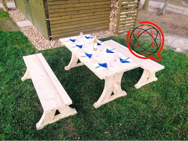 Konstrukcja podstawy ławki i Stołu wykonane są z Drewna świerkowego klejonego o grubości 15/7 cm ,