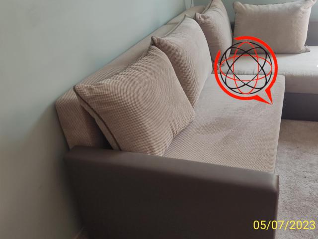 Narożnik w dobrym stanie. Tylko na obiciu dołu lekkie otarcie jak na zdjęciu. Odbiór osobisty w Nowym Sączu.