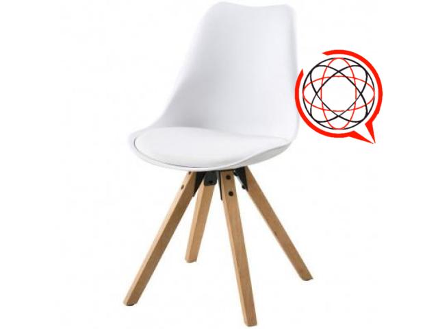 3x Krzesło kubełkowe białe z tapicerowanym siedziskiem i czarnymi nogami