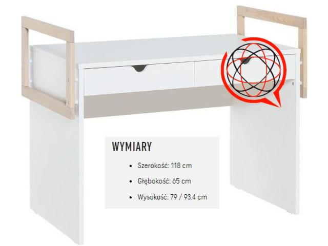 - biurko w szufladami seria STIGE o wymiarach: sz. 118 cm / gł. 65 cm / wys. 79/93,4 cm