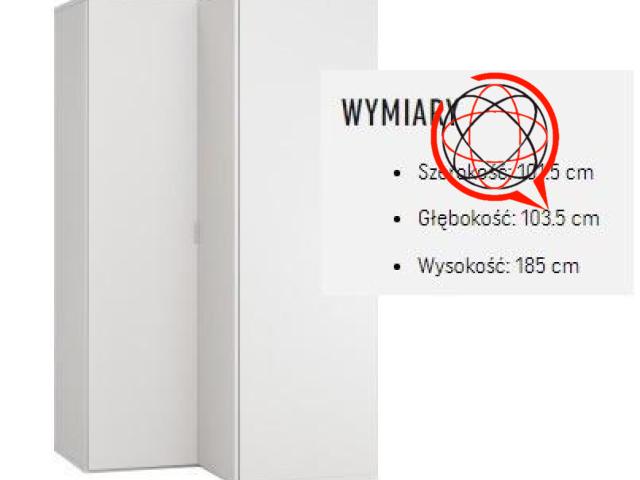 - szafa narożna seria SIMPLE o wymiarach: sz.101,5 cm / gł. 103,5 cm / wys. 185 cm