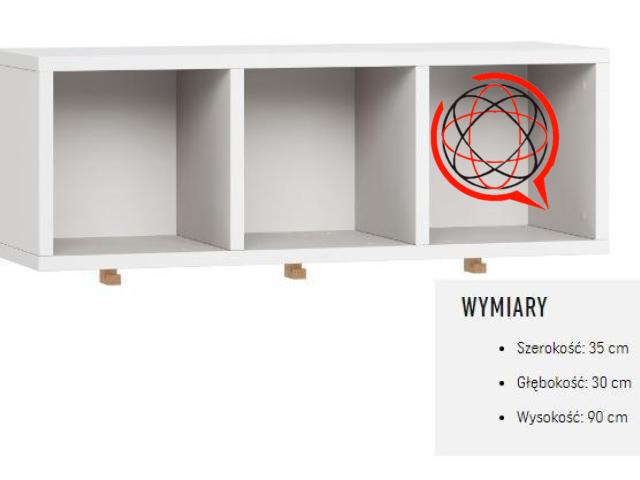 W jej lewej części znajdują się 4 półki z możliwością regulacji wysokości.