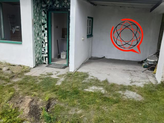 Za domkiem duży małzer oraz duża komórka na narzędzia.