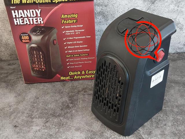 Elektryczny mini grzejnik z dmuchawą wtykany bezpośrednio do gniazda sieciowego w ścianie. Moc 400W Idealny do doraźnego ogrzewania biura, łazienki, stróżówki czy warsztatu.