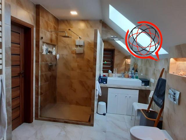na piętrze: sypialni, garderoby z możliwością przerobienia na gabinet lub pokój gościnny, pokoju młodzieżowego, pokoju do własnej aranżacji (odbicia lustrzanego pokoju młodzieżowego) , łazienki z dużym prysznicem oraz sąsiadującej pralni, wysokiego strychu na całej szerokości domu.
