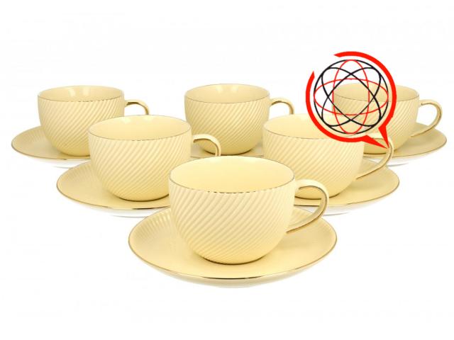 Wykonany z najwyższej jakości porcelany w kolorze śmietankowym wykończonej złotymi zdobieniami oraz tłoczeniami na kształt kręconych lodów włoskich.