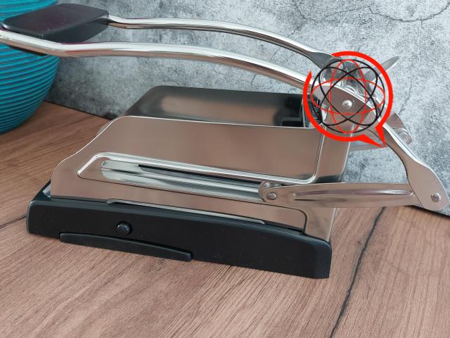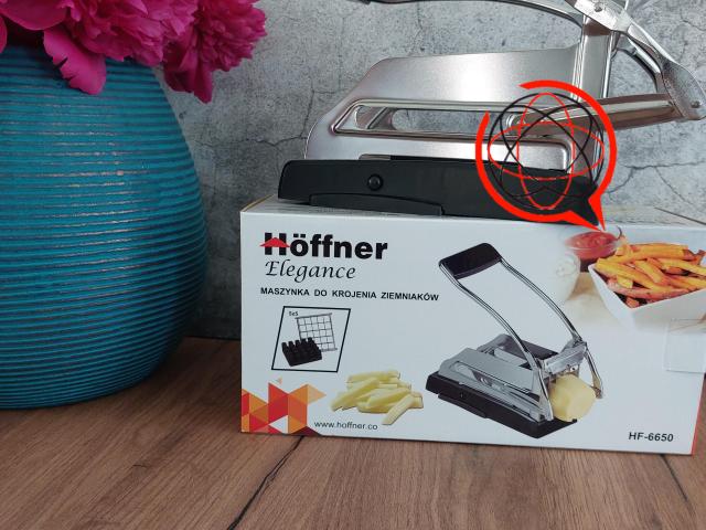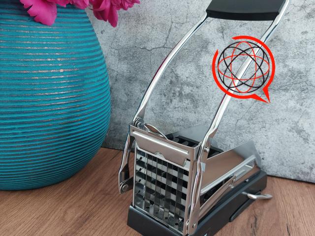 Solidna maszynka do krojenia frytek pozwoli przygotować smaczne i świeże frytki we własnym domu. Dzięki niej jednym ruchem można pokroić całego ziemniaka na frytki. Maszynką można kroić również inne warzywa czy też np jajka.