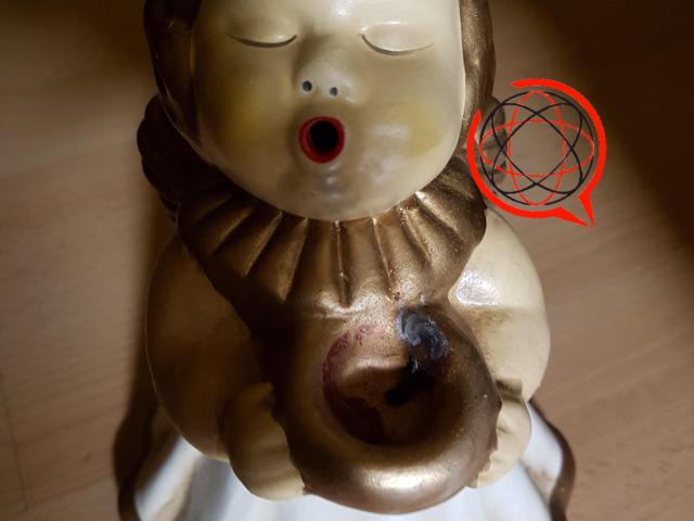 Ceramiczny aniołek świecznik z północnych Włoch, znanej firmy Thun z Bolzano (Thun Angelo di Bolzano).