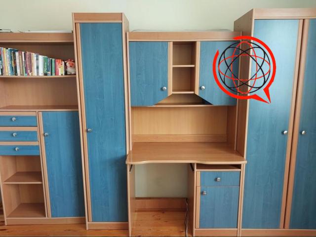 Sprzedam zestaw mebli młodzieżowych. Uszkodzenie na biurku
