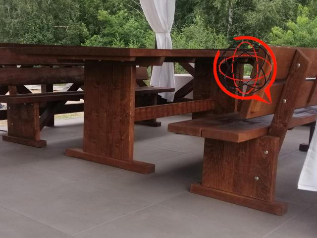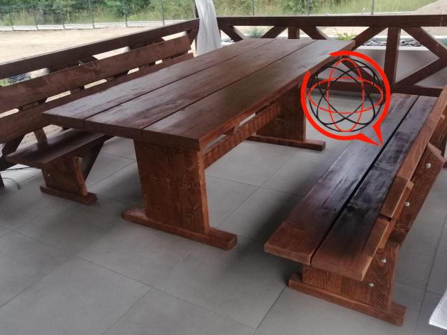 Konstrukcja podstawy ławki i Stołu wykonane są z Drewna świerkowego klejonego o grubości 5 cm ,