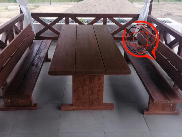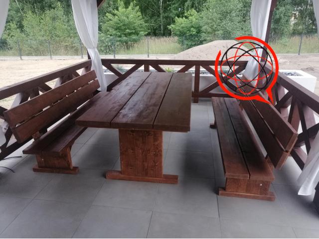Deski ławki i stołu świerkowe o różnych szerokościach zaimpregnowane Drewnochronem Extra powłokotwórczym przeznaczoną do dekoracyjno – ochronnego malowania przedmiotów drewnianych i na zewnątrz oraz wewnątrz pomieszczeń.Powłoka chroniona jest przed grzybami pleśniowymi i glonami.