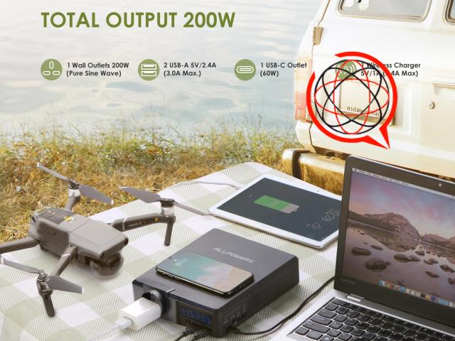 * Generator przenośny: przy maks. 200W i 110V (EU 220V 50Hz) wyjściu AC, można uzyskać ciągłe zasilanie do użytku na zewnątrz lub awaryjne tworzenie kopii zapasowych, zasilanie lamp, telefony, laptopy, telewizory, mini lodówki, CPAP, a nawet dowolne urządzenia do 200W