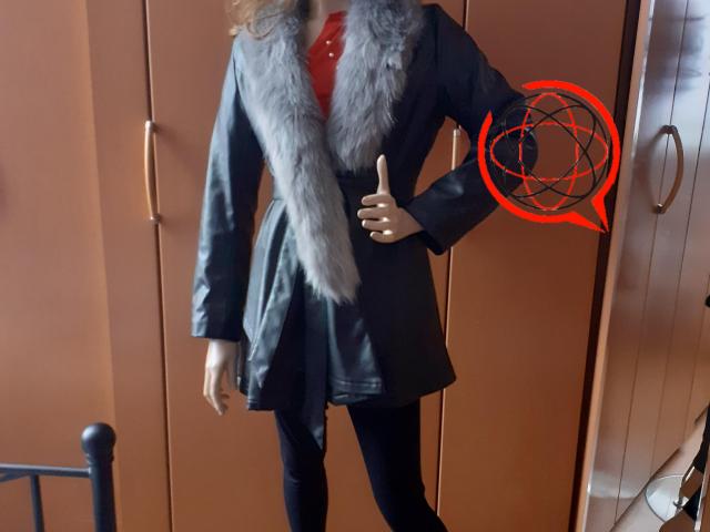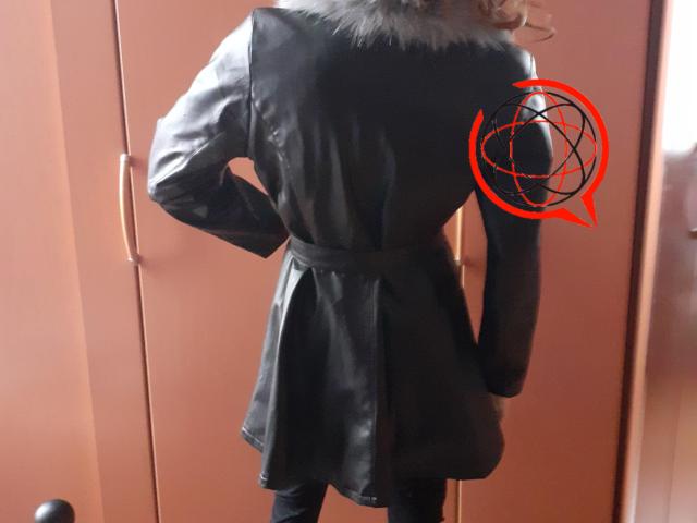 Płaszczyk jest ocieplany futerkiem, posiada 2 kieszenie oraz pasek.