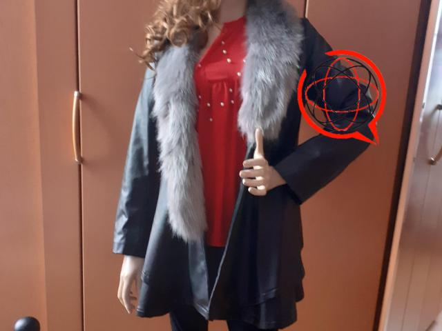 Kurtka, płaszcz rozkloszowany, obszyty futerkiem.