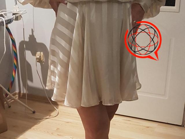 Raz ubrana. Rozm 44 ale ok i na 42. W pasie max 100 cm. Dligosc od pasa w dol 52 cm. Z tylu rozciecie na plecach. Na podszewce