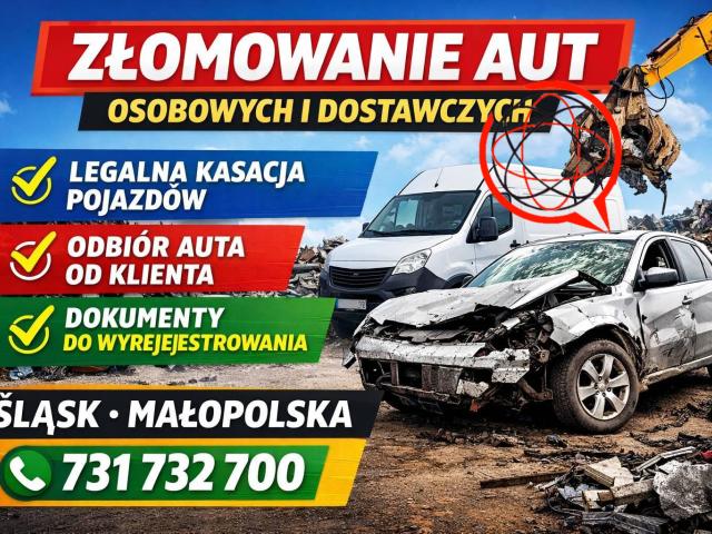 złomowanie aut Śląsk, złomowanie aut Małopolska, auto złom Śląsk, auto złom Małopolska, kasacja pojazdów Śląsk, kasacja pojazdów Małopolska, złomowanie samochodów osobowych, złomowanie samochodów dostawczych, legalna kasacja auta, odbiór auta do złomowania, wyrejestrowanie pojazdu dokumenty, auto złom Katowice, auto złom Kraków, złomowanie aut Katowice, złomowanie aut Kraków, kasacja samochodów powypadkowych, złomowanie aut uszkodzonych