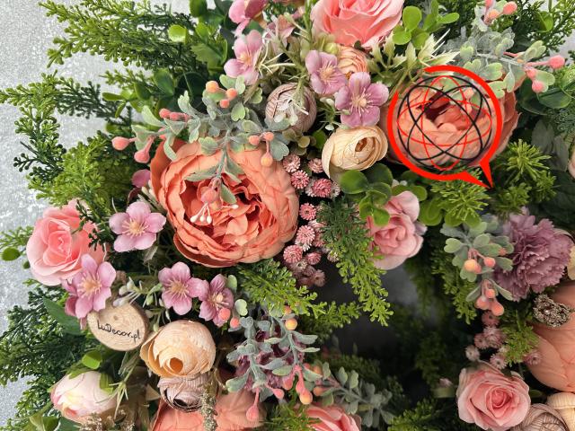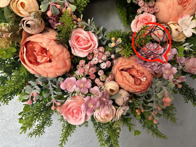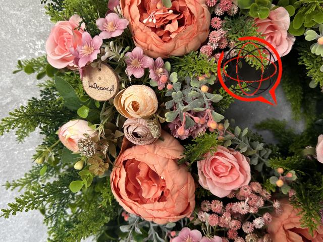 Wianek Tesla udekorowany wyselekcjonowanymi sztucznymi kwiatami i zielonymi gałązkami. Podstawa wianka solidna i stabilna , dzięki czemu można go użytkować przez kilka lat.