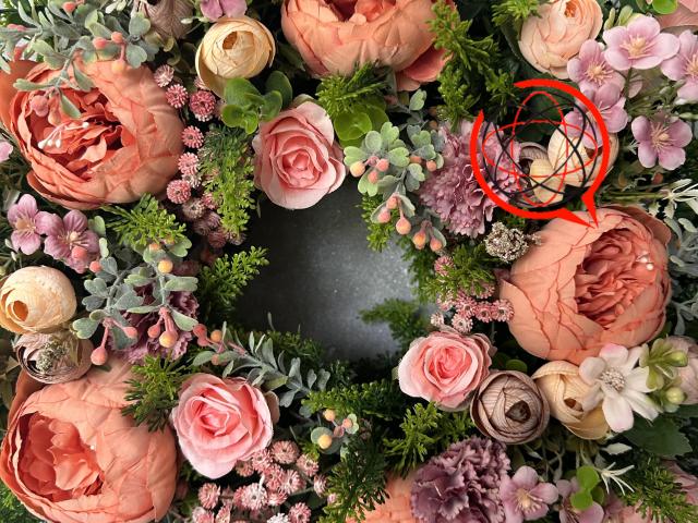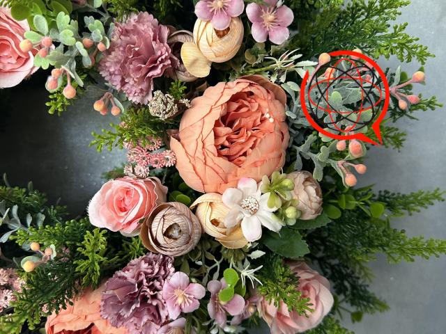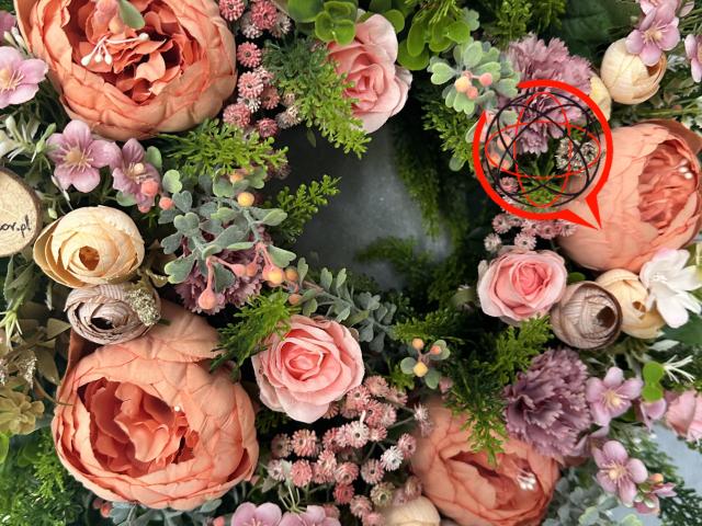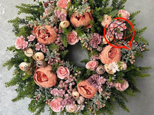 całkowita grubość wianka wraz z kwiatami: 19 cm