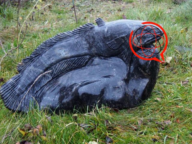 Rzeźba ryby miętusa wykonałem w skale jej długość wynosi 1000 mm.Polecam!