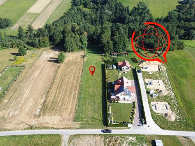 W sąsiedztwie znajduje się luźna zabudowa jednorodzinna oraz tereny zielone. Z działki rozciąga się ładny widok na okolicę.
