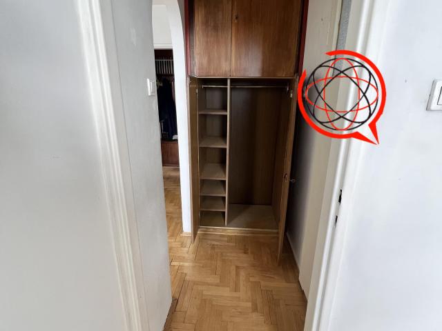 Zgodnie z PRLowskimi wytycznymi mieszkanie ma dwie duże szafy wkomponowane bezpośrednio w ścianę, zapewniając świetną pojemność przechowywania. Uwidocznione na zdjęciach.