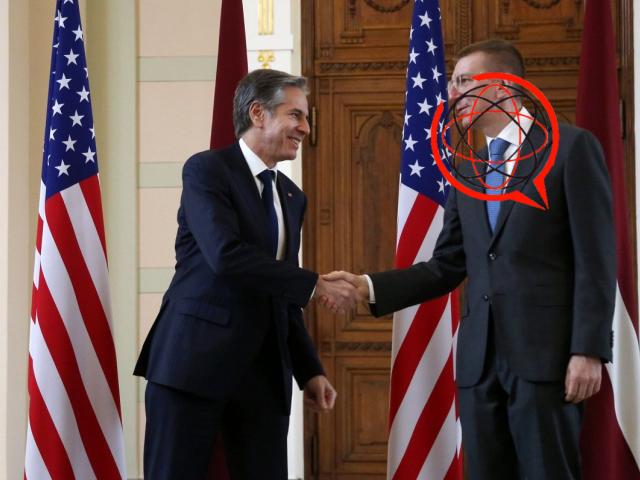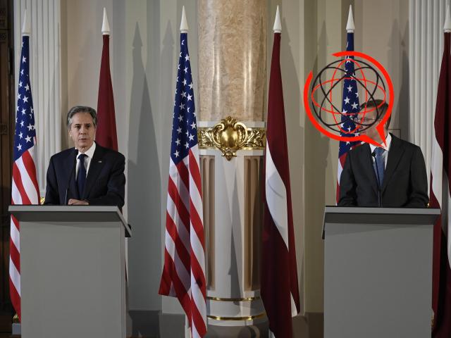 Minister spraw zagranicznych Łotwy Edgars Rinkevics (z prawej) u boku sekretarza stanu USA Antony'ego Blinkena, via AP.