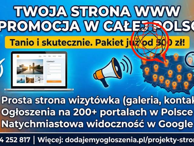Tanio i skutecznie - Twoja strona + promocja w całej Polsce w jednym pakiecie.