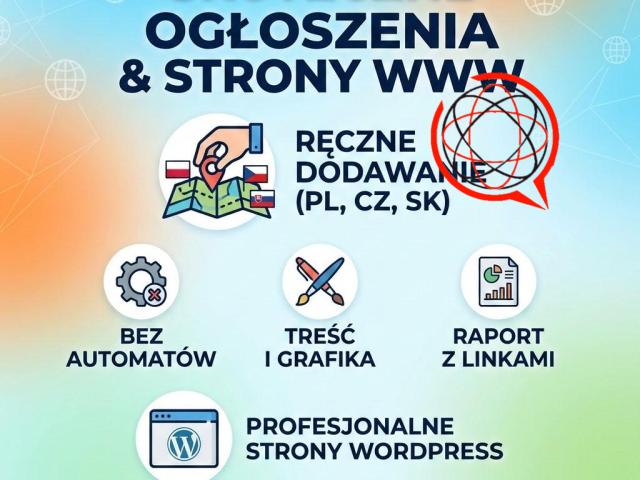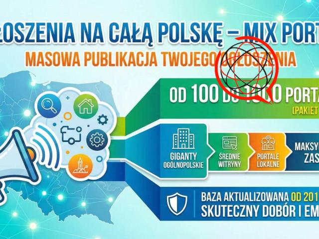 W ramach oferty „Strona WWW - pakiet standardowy” dodamy ogłoszenie promujące Twoją stronę do 200 portali ogłoszeniowych w całej Polsce - zarówno regionalnych, jak i ogólnopolskich.